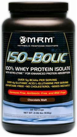 ISO-Bolic provides 100% pure Whey Protein Isolate (aka "WPI") yeilding an amazing 24g protein per serving with 0mg cholesterol, 1g carbohydrate, NO ADDED SUGARS and delivers an uprecendented delicious, creamy taste. Whey Protein Isolate differs itself. Isolate (aka WPI) yeilding an amazing 24g protein per serving with 0mg cholesterol, 1g carbohydrate, NO ADDED SUGARS and delivers an uprecendented delicious, creamy taste. Whey Protein Isolate differs itself from Whey Protein Concentrate (aka 'WPC') simply by providing a higher percentage of protein per serving with LESS carbohydrates, LESS fat, LESS cholesterol and LESS sodium. WPI goes through the most extensive filtering process to remove fat, cholesterol and lactose (naturally occurring carbohydrate). WPI is standard in that fact that a true WPI will contain a minimum 90% protein per 100g where a WPC can contain anywhere from 34-85% protein per 100g. WPI is best taken mediately after intense training and first thing in the morning when fast-acting protein can be best utilized. MRM has added NitroZyme to ISO-Bolic to ensure optimal digestion and absorption as well as eliminating occasional gas and bloating.